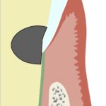 歯肉(及び歯槽骨)を外科的に下げて縫合します。(骨より上に、健全歯質が3ミリ以上確保できるようにする)