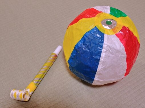 紙風船・・・口をとがらせて穴に向かって一息づつ吐いて膨らまします。