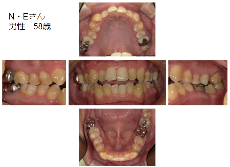 前歯が機能していない分、奥歯にかなり無理をさせてしまっている状態です。