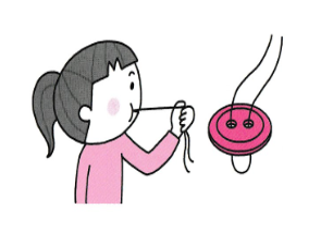 2つ穴ボタンに清潔な糸を通してつくります。(以下のイラスト参照)